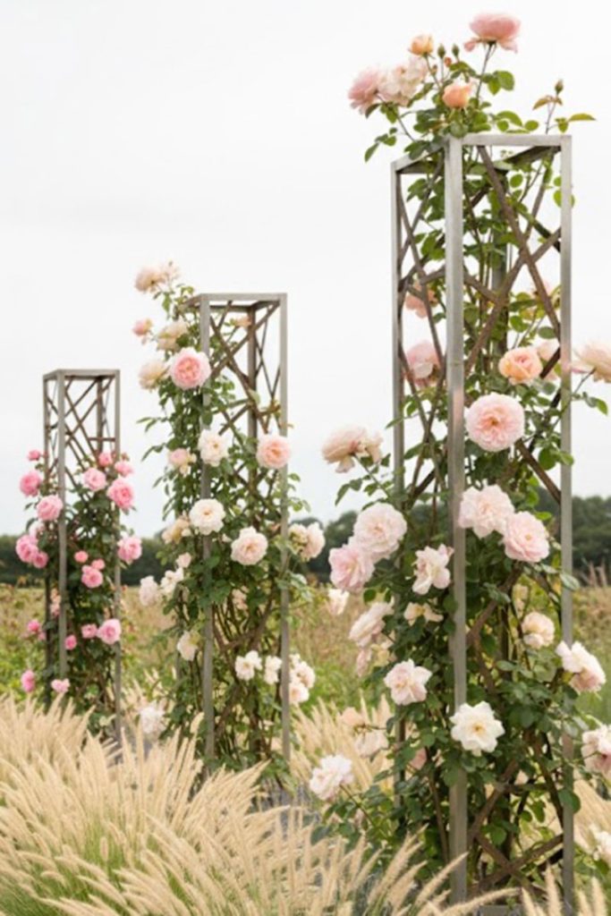 We recommend choosing climbers which will not completely cover the obelisk, for the simple reason it’s nice to see at least part of it and retain the rectangular shape.