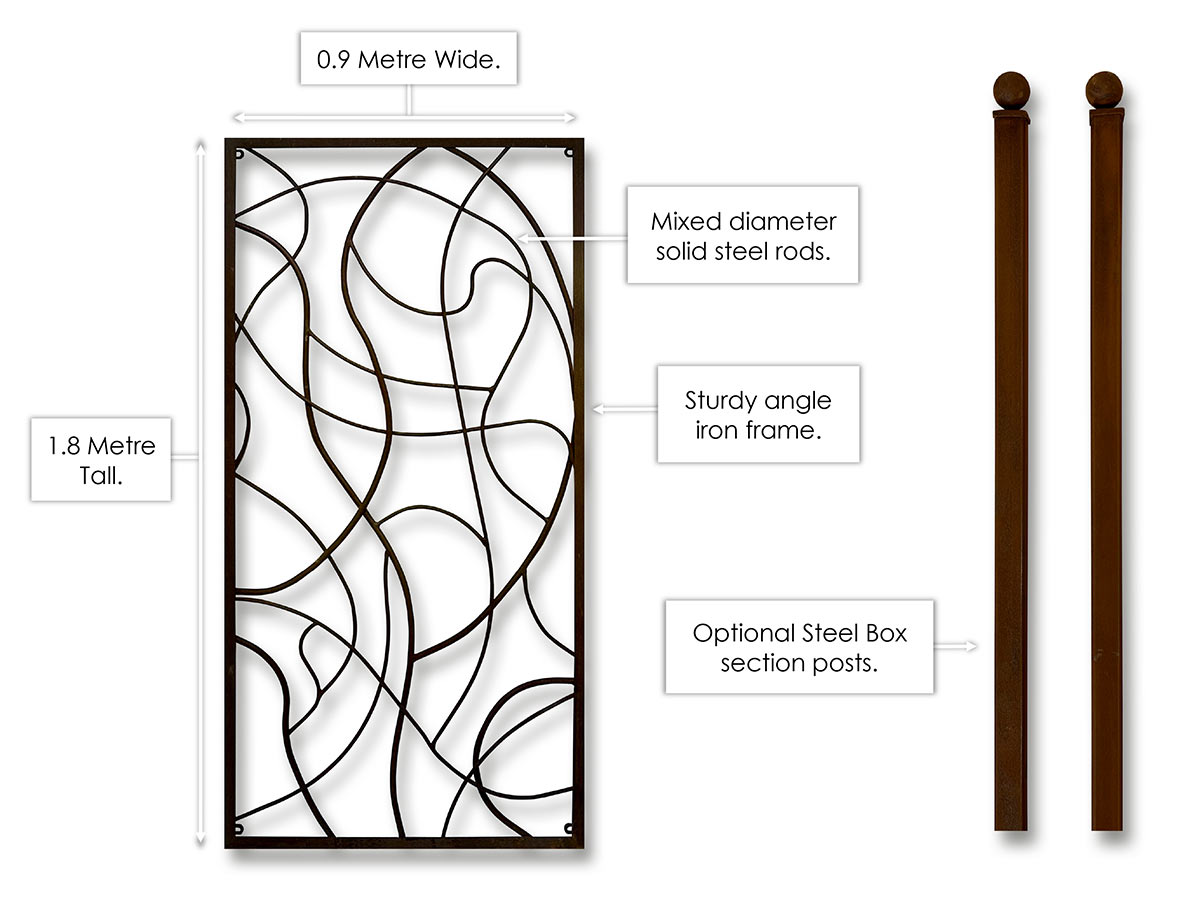 Our metal Trellis can be secured to fences, walls, and buildings. Or use the optional steel posts to create freestanding screens. The open structure retains a view through, while still providing a delineation, climbers can be used to soften and provide a more dense screen if desired.